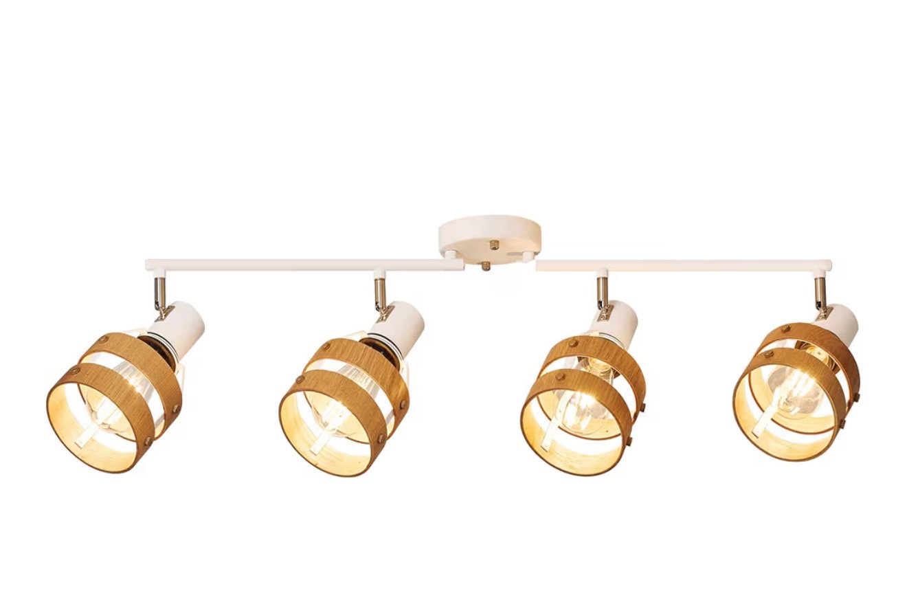 Wood Track Lighting Kit, 4-Lights Ceiling Light, E26 Socket,Metal and Wood Track Light for Living Room, Kitchen, Utility Room (White)