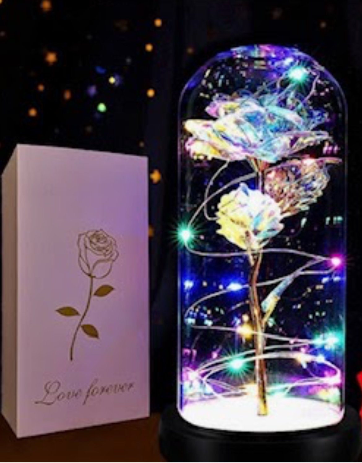 Decorative Rose Glass Dome, Colorful Rainbow Light Up LED Rose, Galaxy Flower Rose Gift for Women, Anniversary, Wedding, Housewarming, Mother’s Day, Birthday