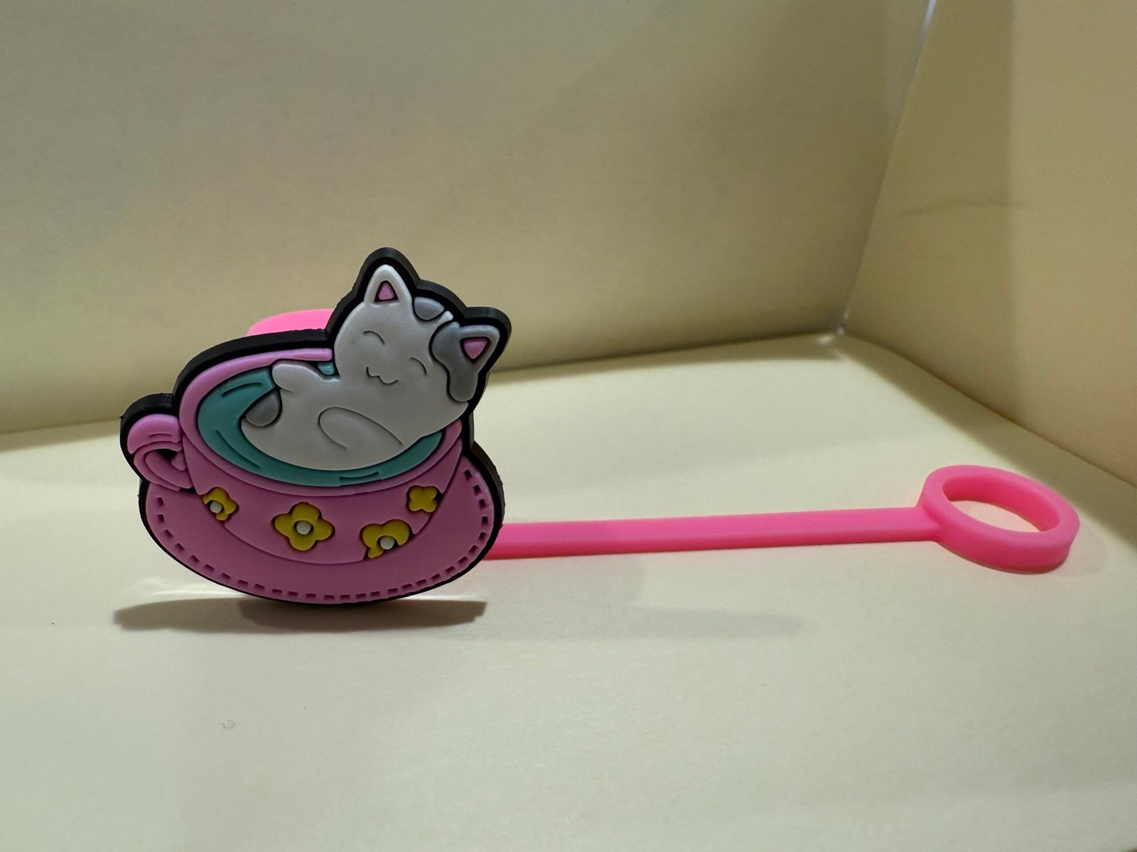 | Style | Cat in basket, white cup, pink flower, white flower, white cat, orange cat, frog, brown bear, white cat in basket, multi color cat |